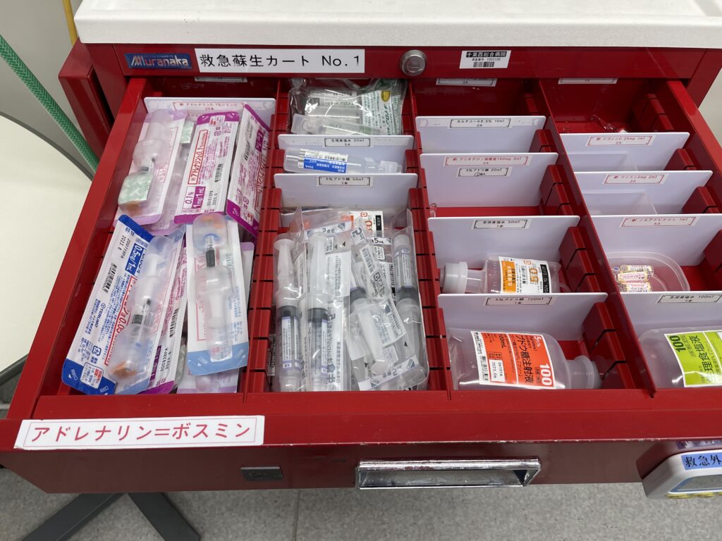 2. 空アンプルは捨てない: 蘇生が終わった後、「何本使ったか」のカウントと記録に絶対必要。ベッド上に放り投げておくか、トレイにまとめる。