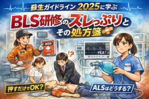 【2025年版】ACLS心停止アルゴリズム図解|アドレナリン投与の「3分・4分」問題も解決!